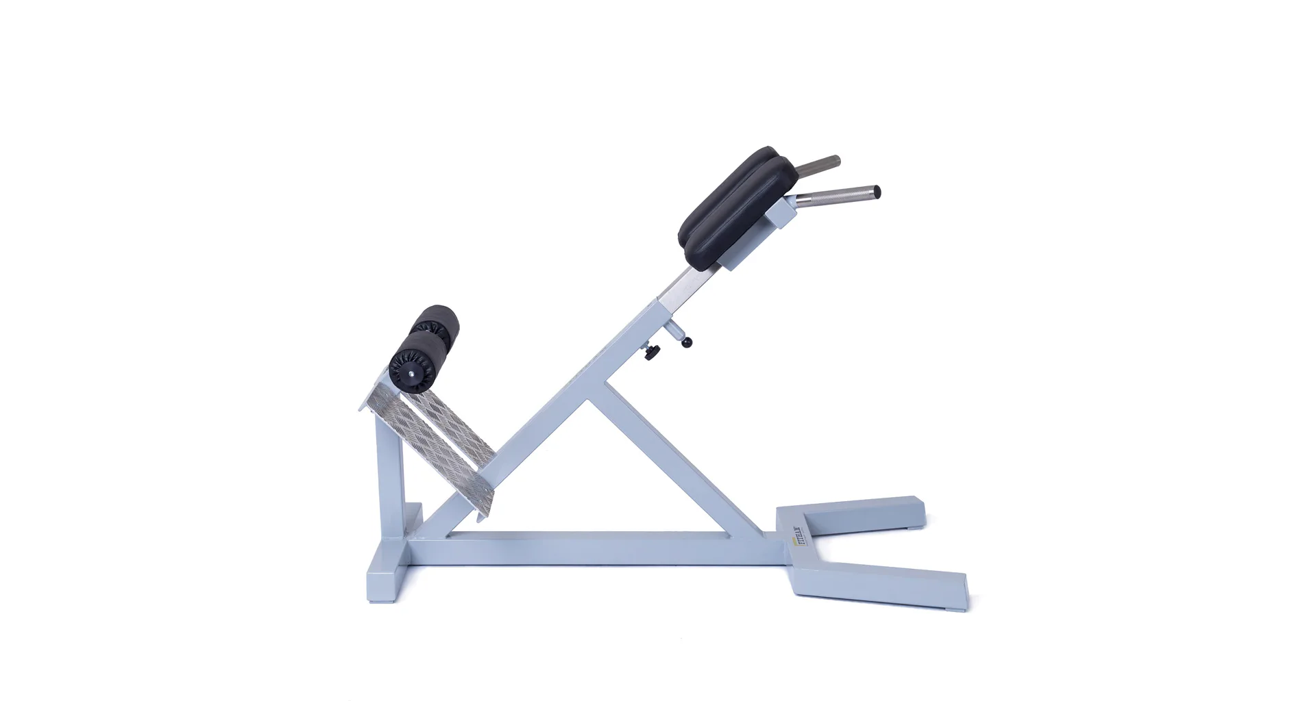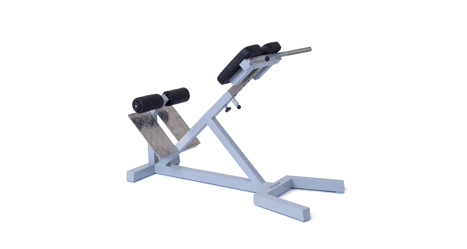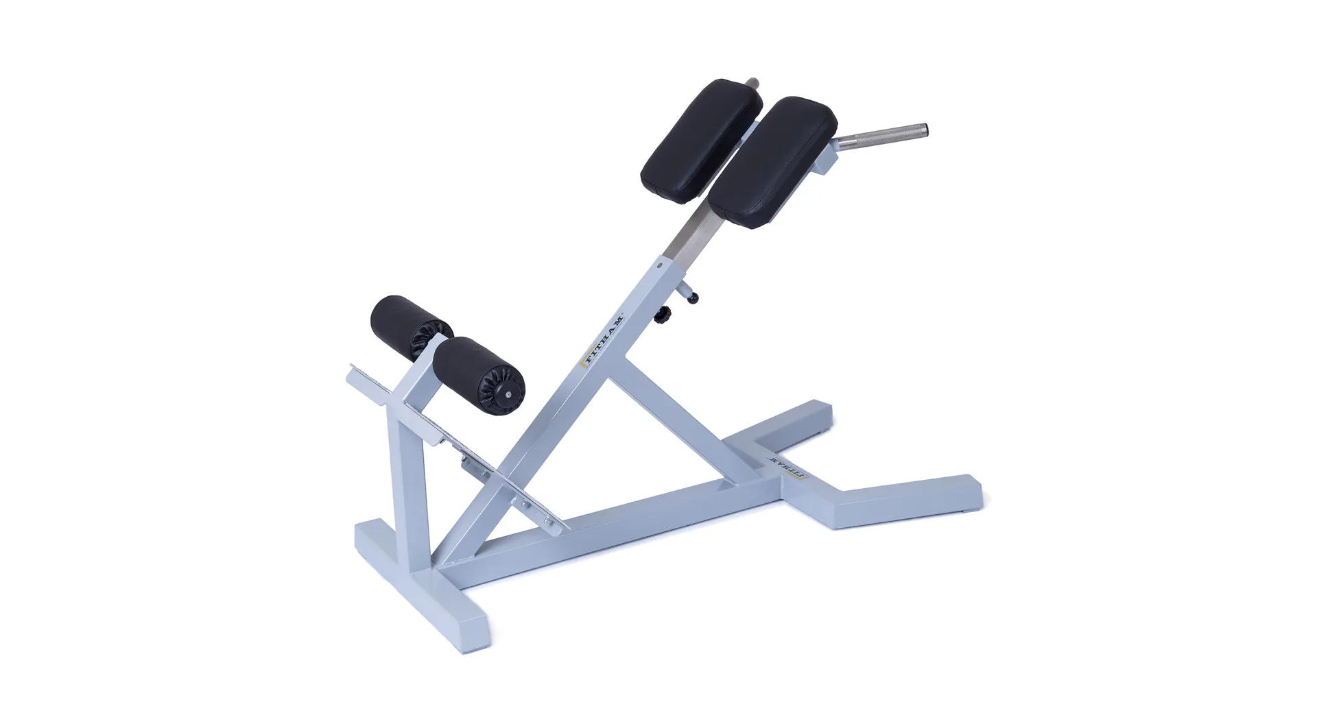 Profesionální FITHAM lavice na vzpřimovače páteře HYPEREXTENZE má zafixovanou pozici a neměnný sklon 45 stupňů, pouze polstrovaná opěrka se dá vysunout (nastavitelná vůči výšce cvičence). Profesionální čalounění, šíře a rozměry opěrek odpovídají profesionálnímu standardu.