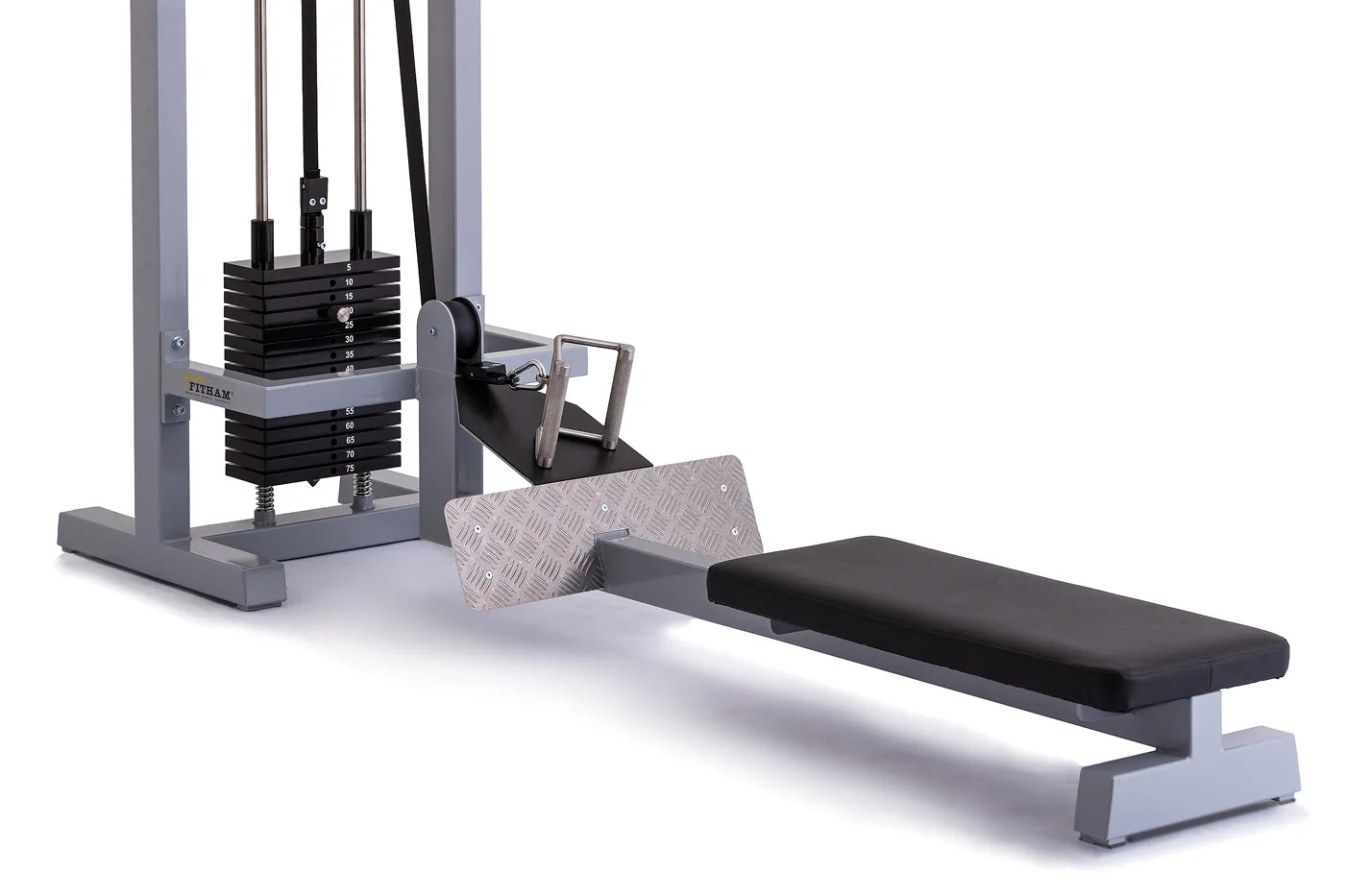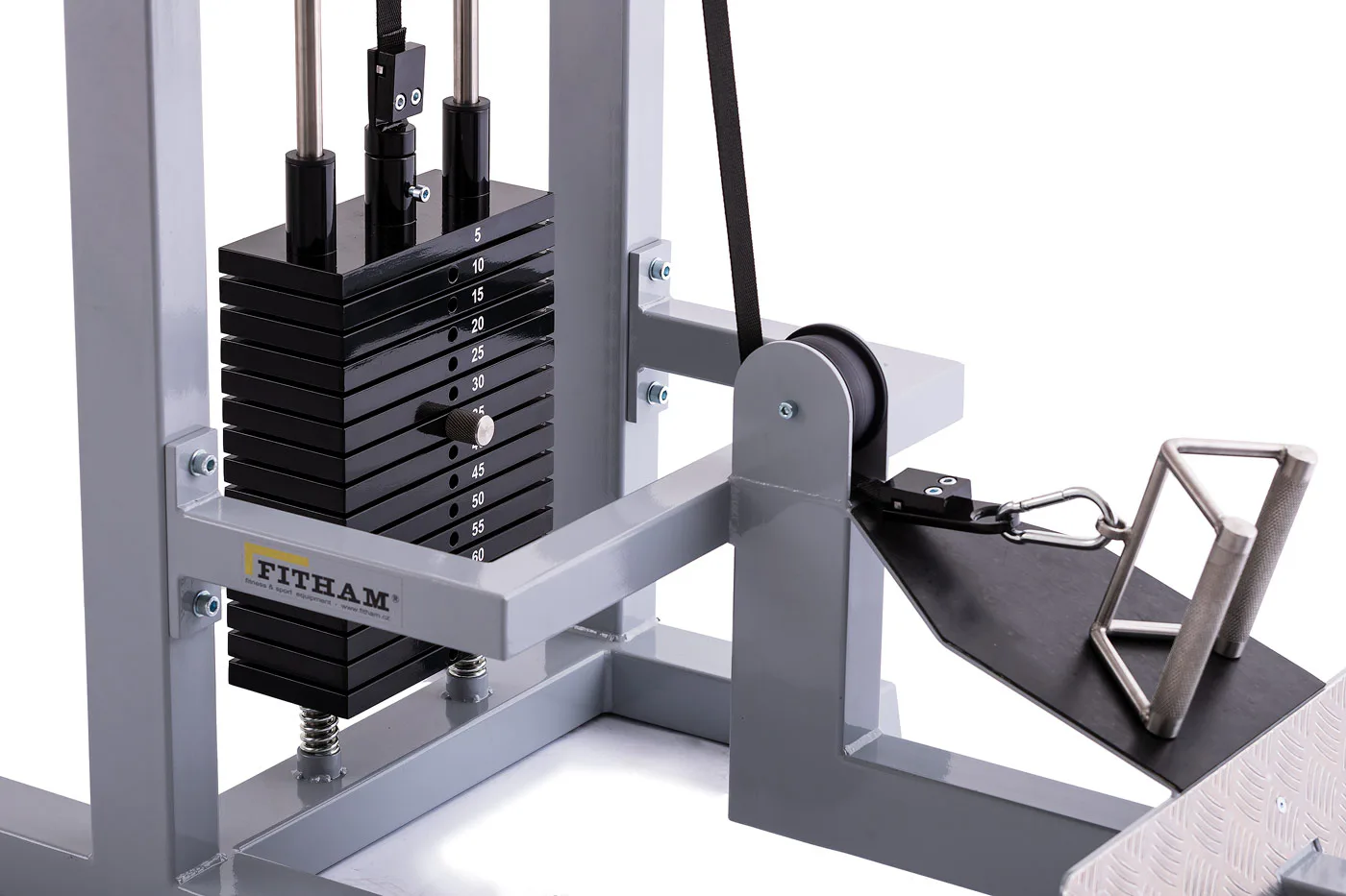 výška stroje 2210 mm , celková délka 2300 mm , šířka 660 mm. Závaží 75 kg. Celková váha stroje včetně závaží zhruba 170 kg.