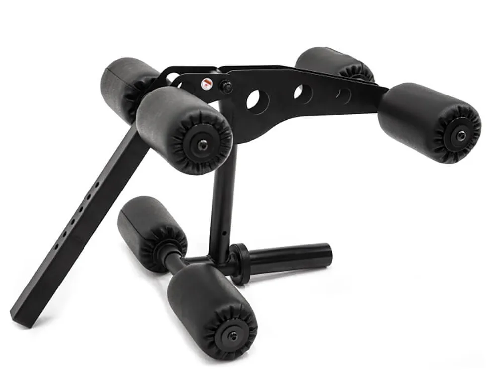 Zátěž se nastaví pomocí olympijských kotoučů na nakládací trn o průměru 50 mm. Pro maximální pohodlí je kopač opatřen dvěma pěnovými válci, které jsou potaženy vysoce kvalitní syntetickou kůží odolnou proti potu.