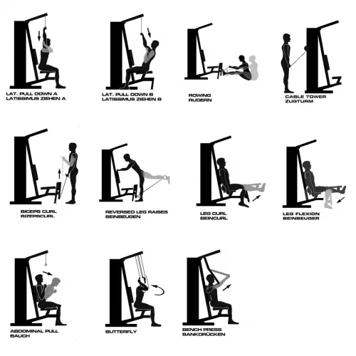 FINNLO AUTARK 2200 nabízí nespočet cviků z nichž základní jsou peck-deck, bench press, veslování, středová kladka na břišní svaly a mnoho dalších.