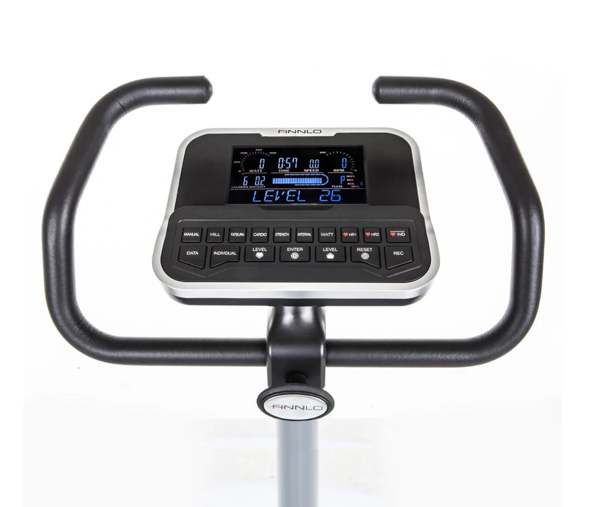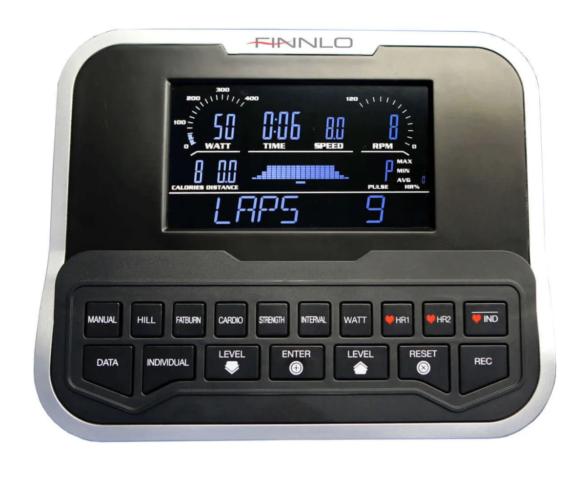 Ergometr FINNLO EXUM XTR disponuje moderní indukční brzdou a 8 kg kalibrovaným setrvačníkem, což zaručuje zcela tichý, plynulý chod a spolu s jemným nastavením zátěže ve 40 stupních poskytuje maximální komfort při šlapání.