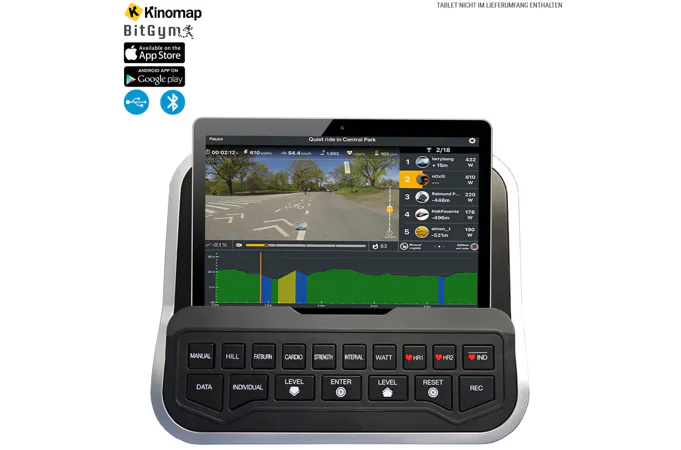 Finnlo Loxon XTR BT disponuje počítačem s LCD displejem a integrovaným držákem na tablet / smartphone.