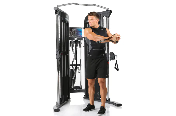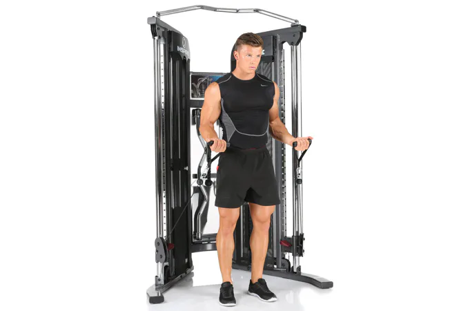 Cvičení za pomoci lanek s kladkami, které lze nastavit jednou rukou a umístit v jakékoliv výšce. Široký sortiment příslušenství jako jsou úchyty, EZ tyč, rovná tyč, tricepsové lano. Všechny jsou součástí věže pro maximální procvičení paží, ramen a nohou. Za pomoci kladek a různých variací polohovací lavice je možné na této posilovací věži procvičit všechny svalové partie.