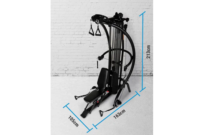 Model FINNLO MAXIMUM Multi-gym M1 zabírá poměrně málo prostoru a navíc nabízí ergonomicky dokonale plynulý systém kladek pro trénink více jak 50 cviků. Všechny kladky jsou plně samostatné a zásobních zátěže váží 75 kg.