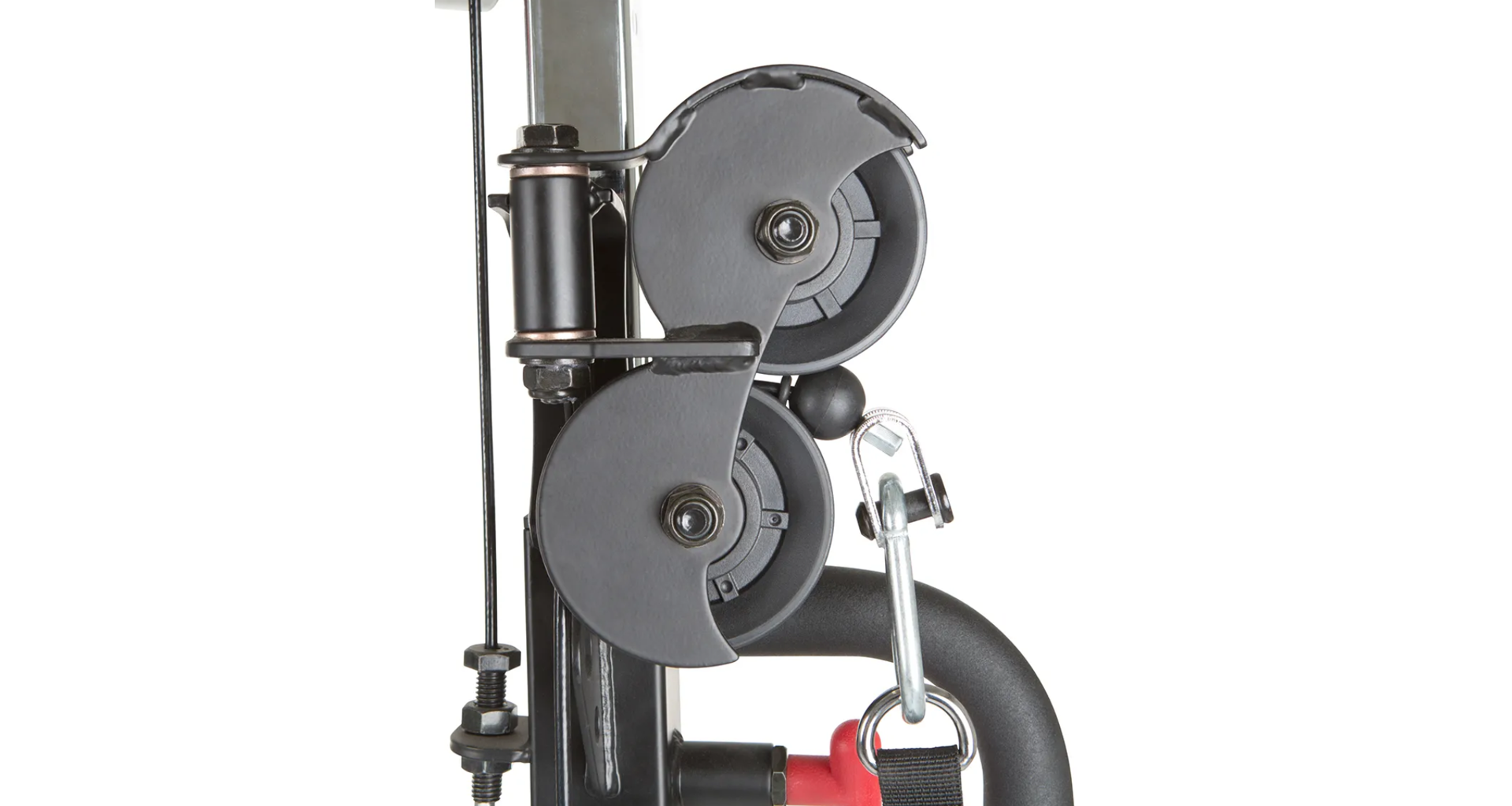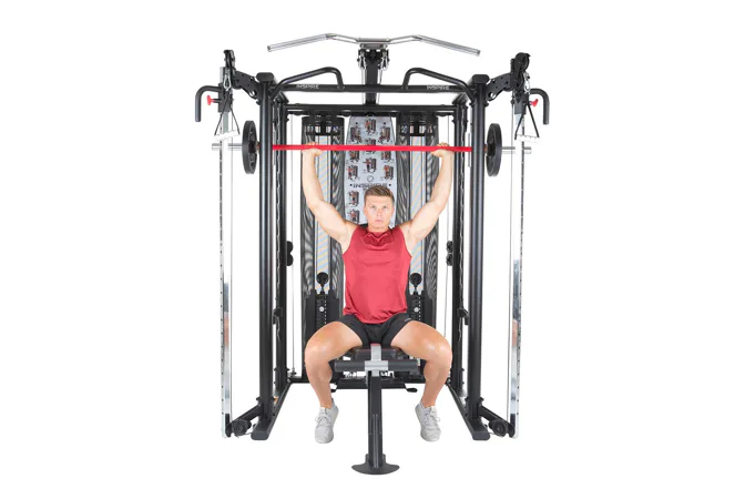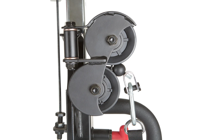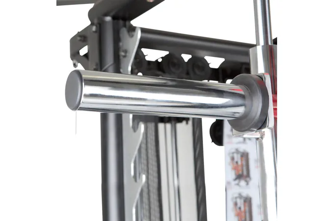 Díky této kladkové konstrukce plně osazené ložisky je zaručena dlouholetá životnost a tichý chod při pravidelném používání. Součástí je i stojan na dlouhou osu a zabudovaný mulipress pro tlaky na prsa, ramena, dřepy apod.