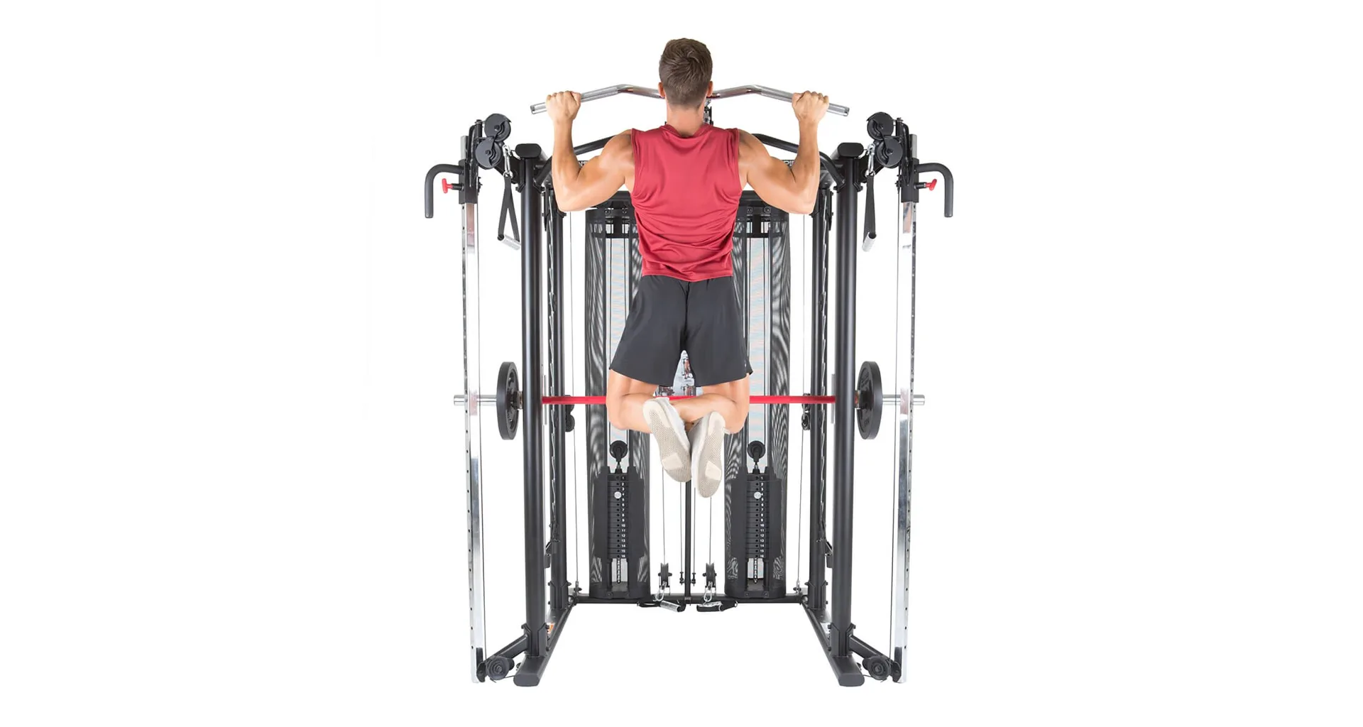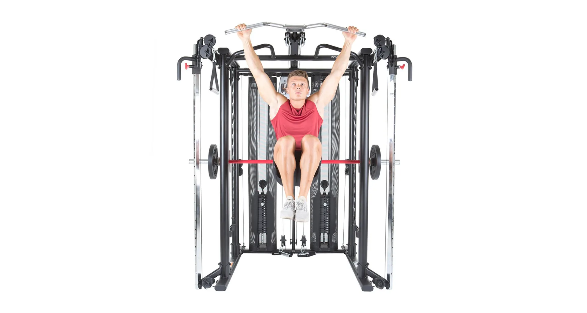 Multifunkční prosilovací konstrukce FINNLO MAXIMUM SCS Smith Cage System je určena pro náročné domácí tréninky, ale je vhodná i do klubových fitek či wellness center.