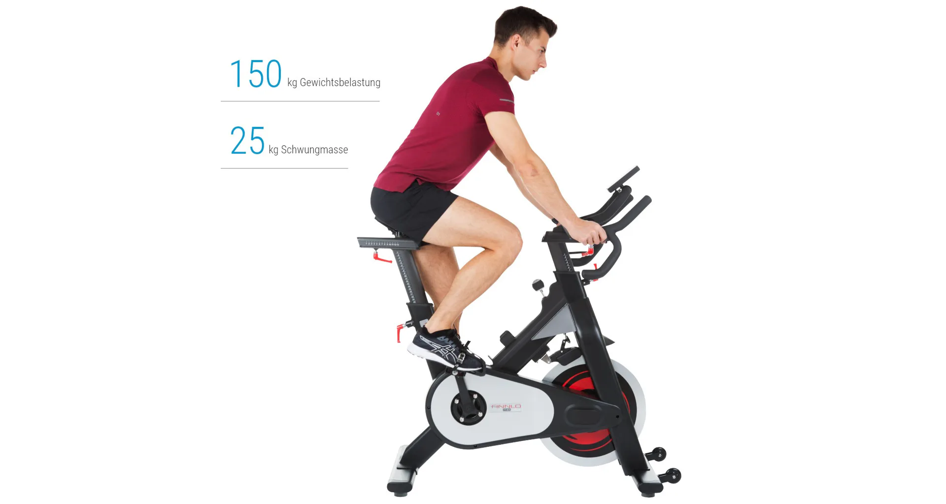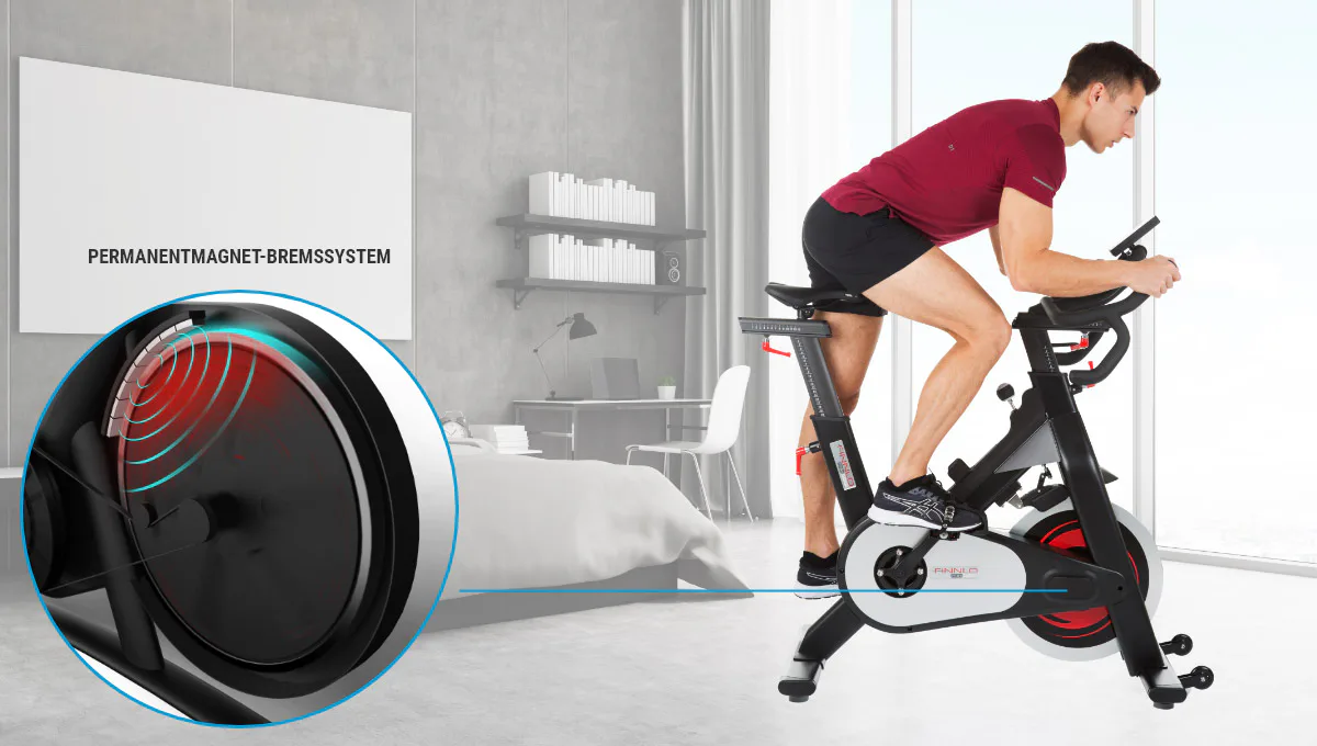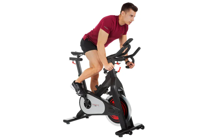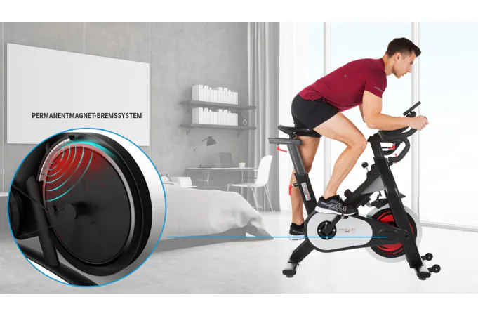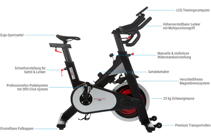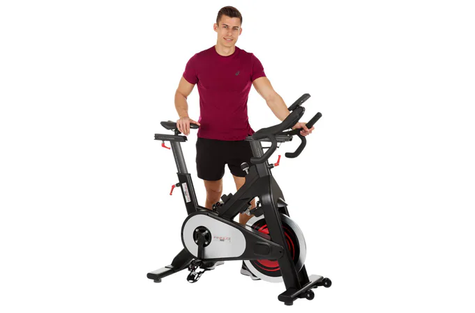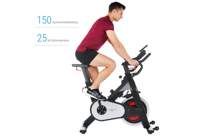 Stejně jako jiné profesionální spinningová kola je tento cyklotrenažér vybaven kalibrovaným setrvačníkem o hmotnosti 25 kg.