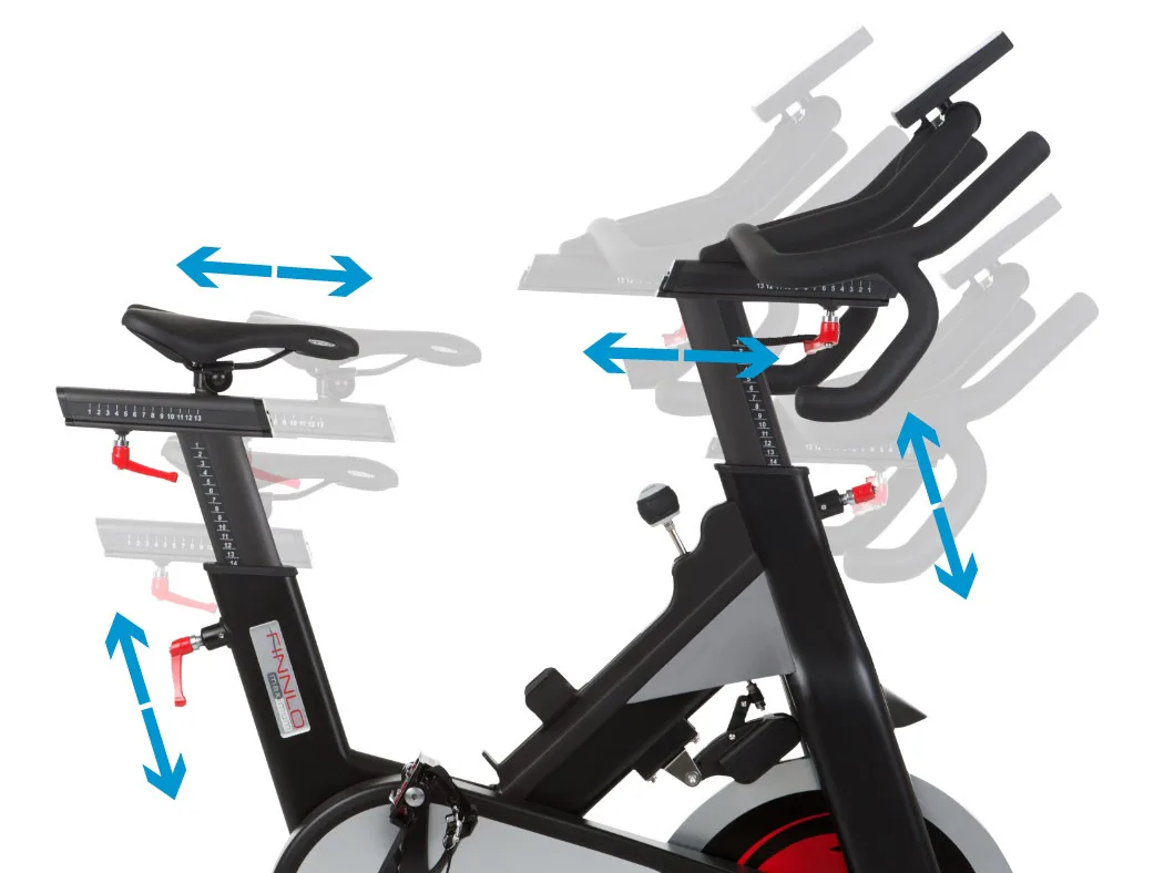 Sedlo i řidítka lze nastavit ve vertikálním i horizontálním směru pro maximální komfort (sedlo má i možnost polohování i sklonu).