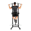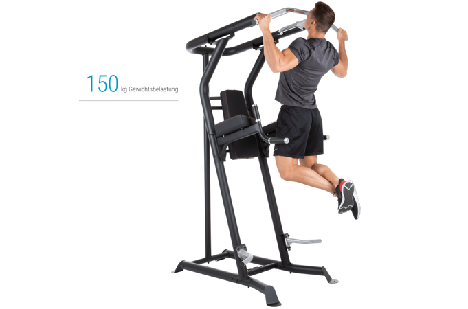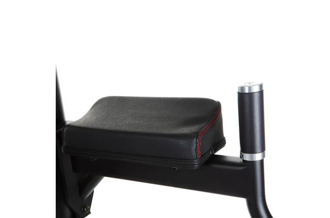 Dvě područky s prošitým čalouněním a ergonomicky nakloněná podpěra zad zaručují optimální polohu při cvičení. Všechny adaptéry jsou opatřeny pogumovanými rukojeťmi. Hrazda a opěrky na kliky mají chromovanou úpravu.