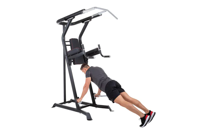 Multifunkční konstrukce Vertical Knee Raise je velmi oblíbená pro svou univerzálnost. Tato konstrukce nabízí 4 různá stanoviště. Vrchní část obsahuje hrazdu s širokým i úzkým úchopem, bradla pro přednožování a rukojeti na kliky na bradlech. Ve spodní části jsou pak integrovány opěrky na klasické kliky v maximálním rozsahu pohybu. Ergonomicky řešená konstrukce vám umožní komplexní procvičení zad, břišních svalů, svalstva paží a ramen, to vše pohodlně a v optimálních polohách.