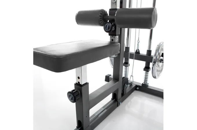 FINNLO Multi Lat Tower je vybavena polohovatelným sedákem a dvěma válci pro zapření kolen během cvičení. Válce i sedák jsou polstrované a potažené kvalitním koženkovým materiálem nenáročným na údržbu.