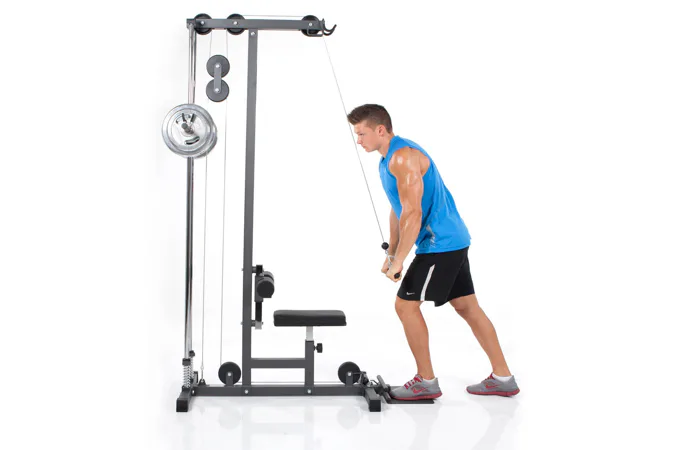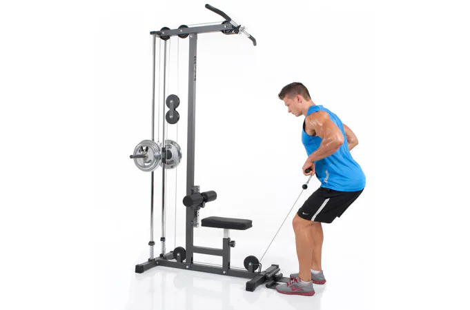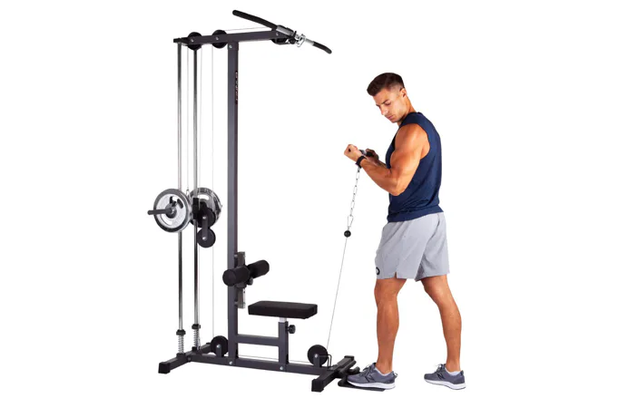 Věž je vybavena horní kladkou s dlouhým zahnutým adaptérem a spodní kladkou, s rovným adaptérem, vhodnou na veslování a také posilování bicepsů a tricepsů.