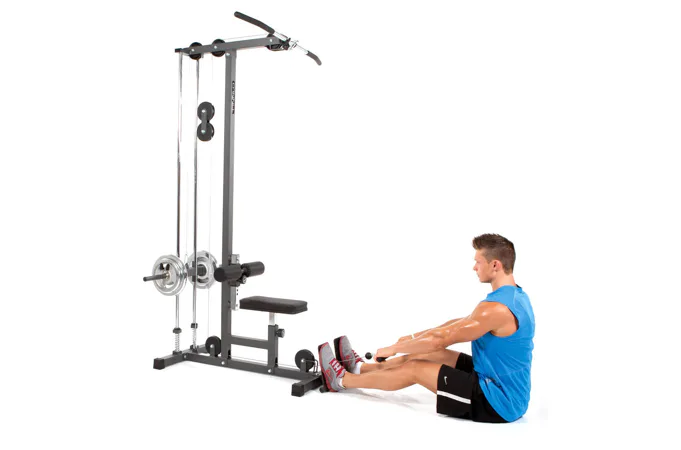 FINNLO Multi Lat Tower je vhodná pro osoby různých výšek. Díky výškově nastavitelnému sedáku a čalouněným opěrkám pro nohy se na věži dobře cvičí i osobám do 200 cm. Pro ideální polohu těla při veslování jsou v přední části věže opěrky na nohy.
