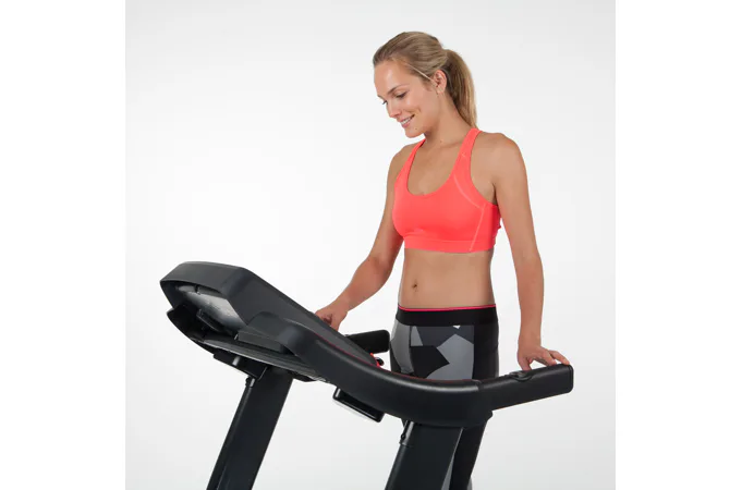 Pro ještě vyšší komfort při běhání je trenažér vybaven odkládacími plochami na konzoli, kde je možné umístit např. lahev s pitím či mobilní telefon pro poslech hudby apod.