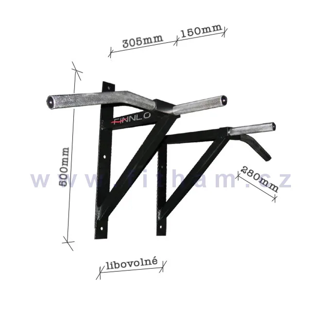 FINNLO PULL UP BAR (nástěnná hrazda - bradla) je možné ji namontovat na zeď jako hrazdu nebo bradla, dle požadavku zákazníka.