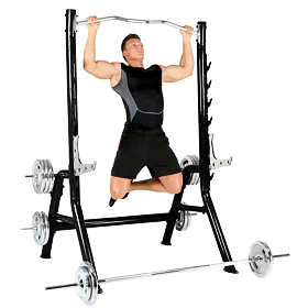 • multifunkční multipress se stojanem na činku a lavicí, výškově nastavitelné kladky, hrazda