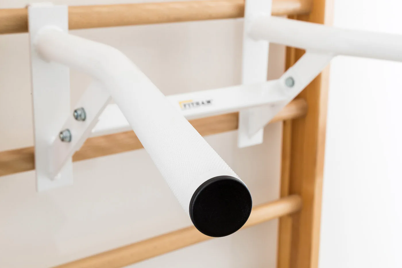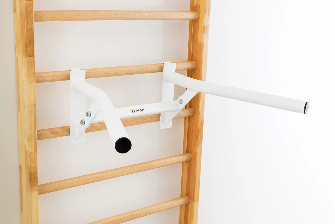 Kvalitní ocelová FITHAM bradla závěsná na ribstol pro cvičení tricepsového kliku, jsou spojenou konstrukcí, tvoří jí dvě úchopové části a spojovací příčka, celou konstrukci spojují celkem 4 šrouby s matkou. Povrchovou úpravu tvoří vypalovaný lak bílé barvy (komaxit). Bradla jsou vhodná i pro komerční využití, jejich výhodou je zahnutá úchopová část, umožňující optimální úchop drobnějším i urostlejším postavám. Úchopové části jsou opatřeny protiskluzovým rádlováním. Vyrobeno v České republice!