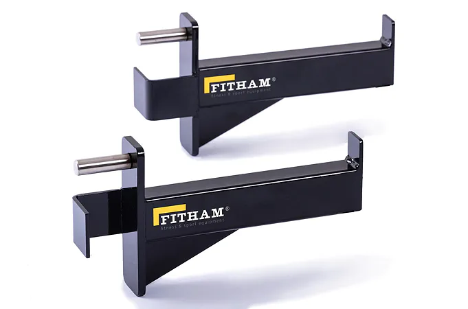 Dorazy na činku pro doplnění systému posilovacích konstrukcí FITHAM CROSSFIT. Hlavní vlastností bezpečnostního úchytu je jeho pevnost při pokládání velkých vah s osou. Slouží jako pojistný doraz v dolní hranici rozsahu při dřepech, bench pressu a dalších cvicích s volnou osou. Je lehký a jednoduchý na přepravu. Tento komponent není součástí kompletních hrazd či klecí.