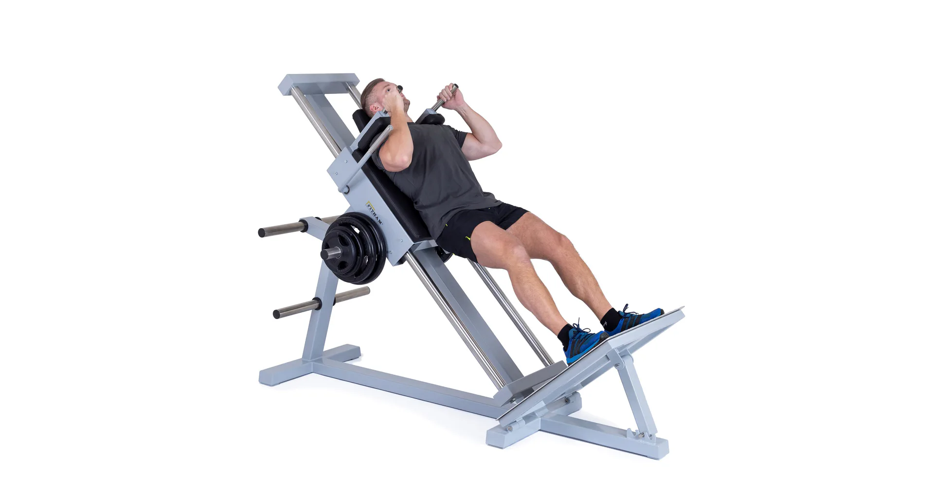 Trénink probíhá na zafixované zádové opěrce, díky čemuž lze kontrolovat svaly a nezatěžovat záda. Veškerý tlak směřujeme do pojízdné platformy s nastavitelným sklonem. Na zadní část stroje přidáváte zátěž v podobě kotoučů. Podle postavení a rozsahu pohybu můžeme posilovat různé svalové partie na nohou (stehna, hýždě, lýtka) a jejich části.