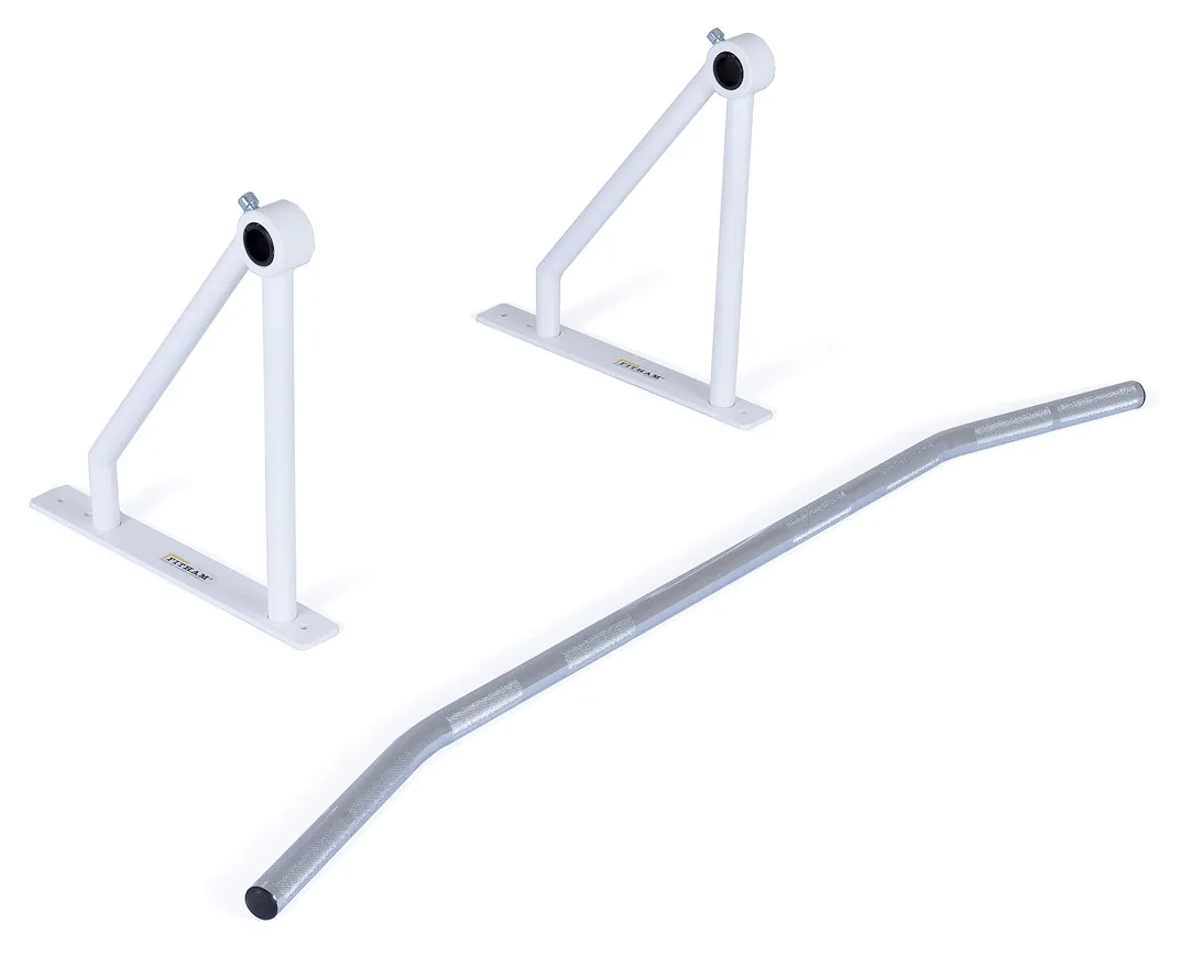 Nástěnná hrazda FITHAM na svislou stěnu je kvalitní český výrobek ze silnostěných ocelových profilů. Samotná úchopová tyč je v místech úchopů rádlovaná, v povrchové úpravě - nikl+chrom, uchycecená je v silných plastových pouzdrech. Hrazda je velmi kompaktní, upevňovací díly lze uchytit v libovolné vzdálenosti od sebe, tak aby bylo možné ideálně využít i paralelní úchopy, které jsou také rádlované. Vhodné umístění hrazdy je například i nad dveřními zárubněmi, hrazdu je možné instalovat i v otočené poloze, tak že kolmá příčka je v horní části.