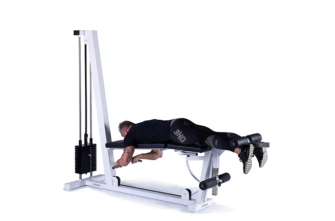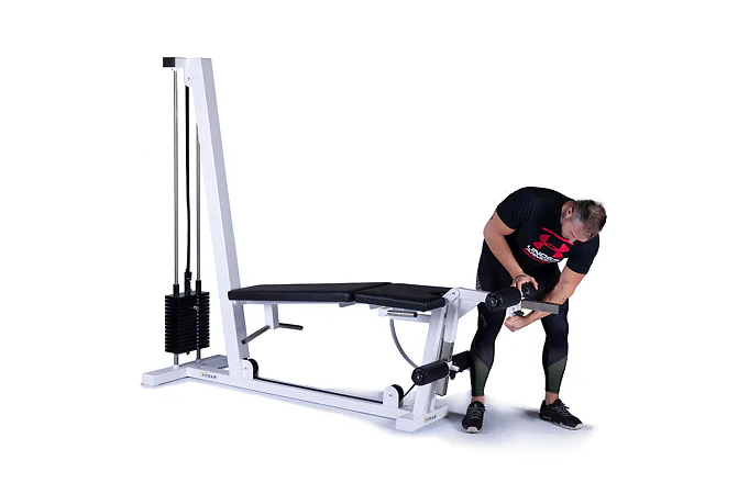 Konstrukce má pohodlnou polstrovanou lavičku se dvěma pěnovými válci na zakopávání a předkopávání. Zádová opěrka lze položit do zcela vodorovné pozice pro komfortní cvičení při zakopávání. Závaží je řešeno pomocí ocelových cihliček, díky zpřevodování umožňuje cvičení s vahou až 75 kg . Nastavení požadované váhy je snadné a rychlé.