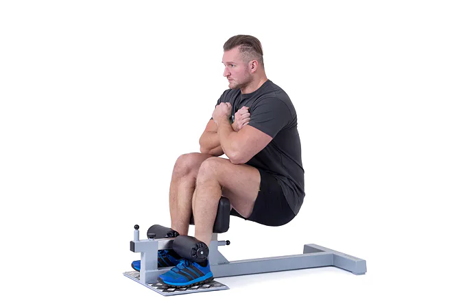 K dosažení toho správného tréninkového postoje vám pomůže nastavitelná podpěra nohou i posuvný válec, který vám nohy pevně zajistí. Výhoda tohoto systému je, že se můžete bez obav zaklonit, jak jen to půjde, a plně se tak zaměřit na posilování stehen a stabilizačních svalů horní poloviny těla, obzvlášť svalů břišních.