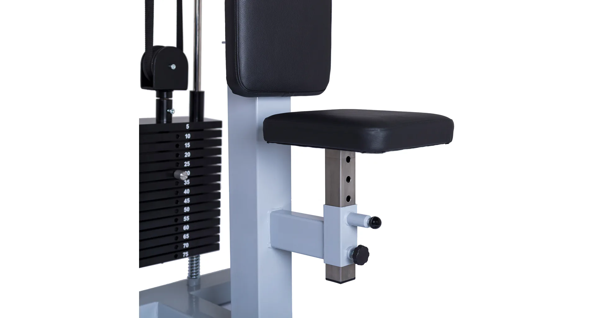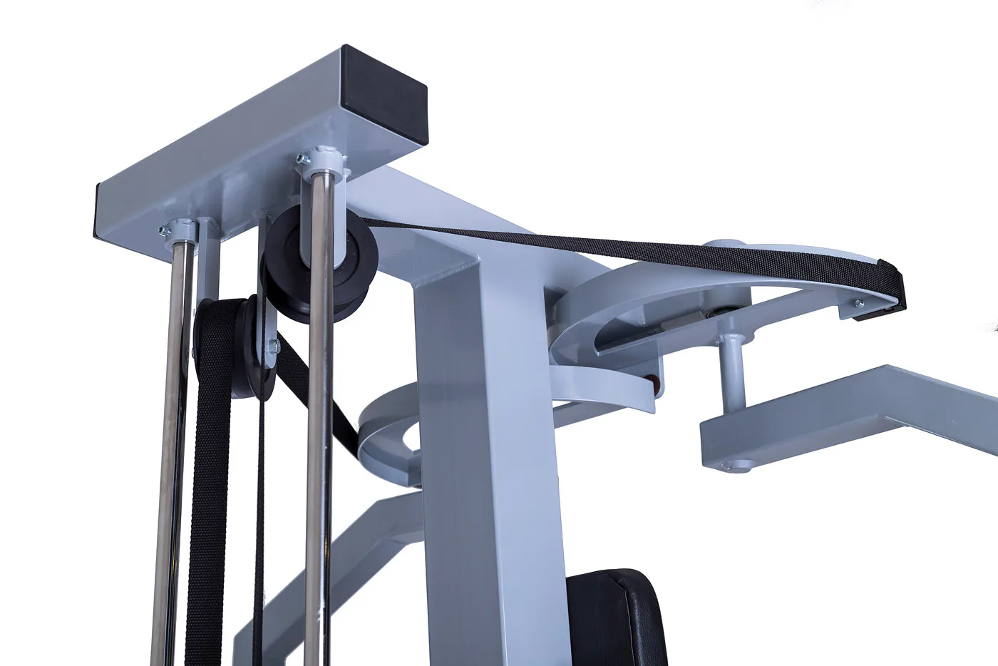 Stroj disponuje masivní ocelovou konstrukcí, která zajišťuje stabilitu a bezpečnost při tréninku. Samotné kladky jsou osazeny ložiska pro plynulý chod lanka a odolají i extrémní zátěži. Závaží je řešeno pomocí ocelových cihliček, díky zpřevodování umožňuje cvičení s vahou až 75 kg . Nastavení požadované váhy je snadné a rychlé.
