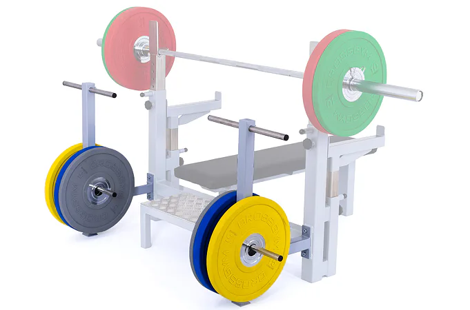 FITHAM stojany na kotouče k Benchpressu jsou doplňkem k FITHAM Benchpressu s výsuvnými stojany. Jsou perfektním pomocníkem pro odkládání kotoučů. K dispozici je až 8 trnů na odložení zmíněných kotoučů a dohromady na ně můžeme odložit až cca 40 kusů kotoučů!
