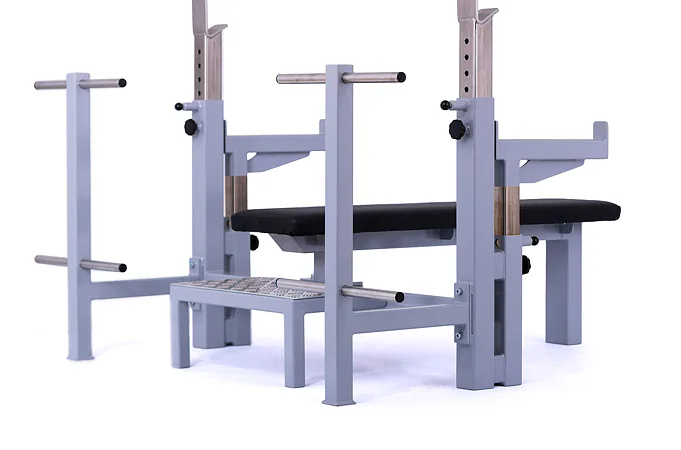 Stojany jsou stejně jako samotný benchpress vyrobeny z vysoce odolné konstrukce ze silnostěnné oceli, která lakovaná pomocí speciálního práškového laku, který je vysoce odolný vůči oděru a agresivnímu potu.