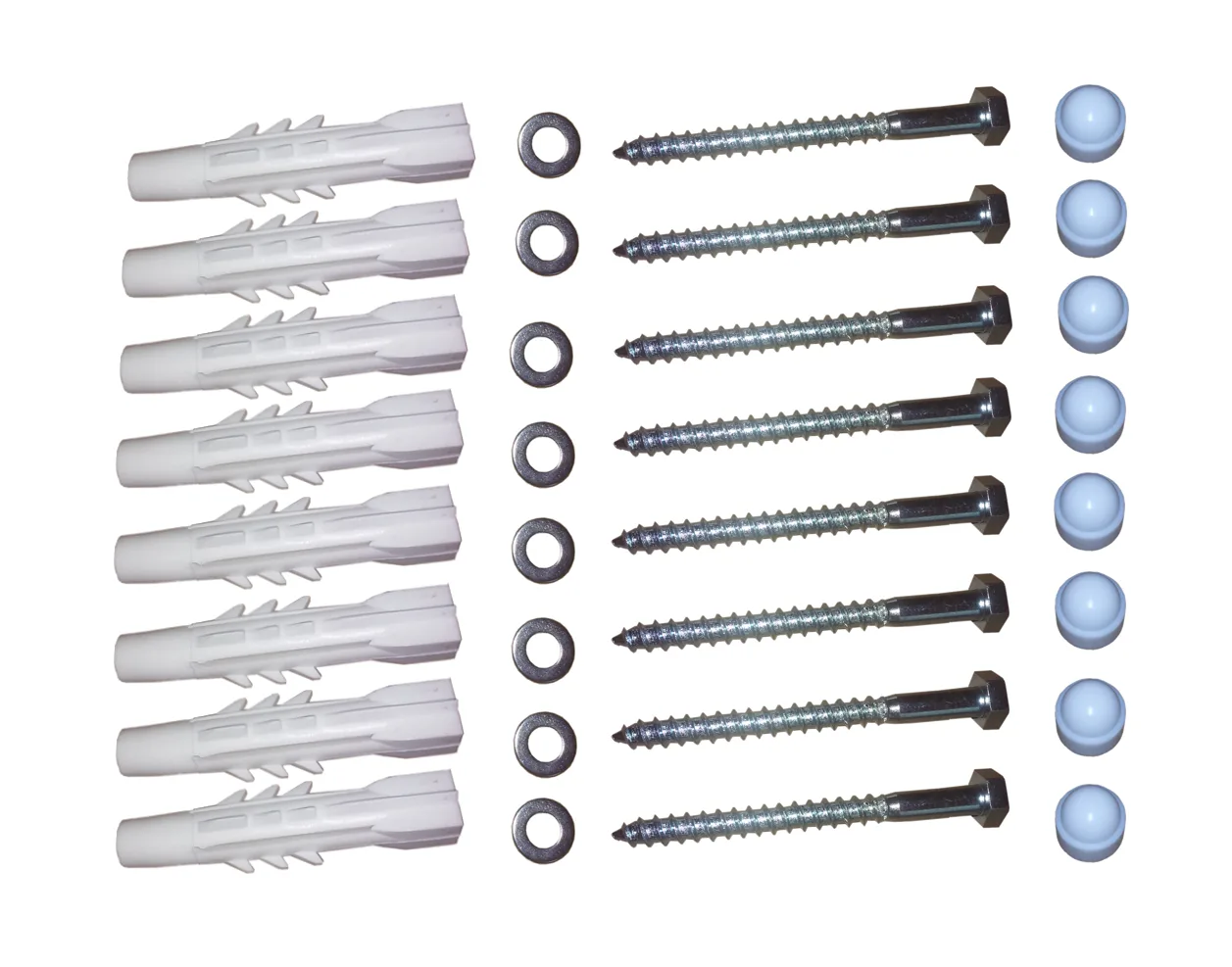Doplňkový produkt: FITHAM Universální montážní sada A je vhodná pro uchycení většiny námi nabízených hrazd a bradel. Montážní sada je určena pro běžné zdivo (cihla, beton), nebo pro stropní konstrukce (beton). Skládá se z hmoždinky, vrutu, podložky a krytky hlavy šroubu, vše po 8 kusech, přestože některé hrazdy či bradla nemají možnost použití celého počtu kusů.