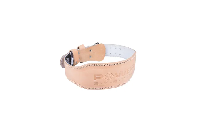 Fitness opasek kožený POWER SYSTEM Natural je profesionální světle kožený opasek s dlouhou životností na zpevnění středu těla při posilování. Opasek je vyroben z prvotřídní, silné buvolí kůže a je určen pro intenzivní trénink. Vnitřní strana je anatomicky vypolstrovaná pěnou, potaženou jemnou vrstvou kůže. Pásek je možno nastavit v rozmezí až 8 děr, kde vzdálenost mezi dírami je 2,5 cm. Výška v zádové části pásu je 10 cm.