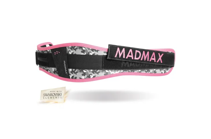 Dámský anatomicky tvarovaný syntetický opasek WMN se SWAROVSKI kamínky je funkčním a elegantním doplňkem do posilovny. Opasek vyniká precizním zpracováním za použití těch nejkvalitnější materiálů. Barevně vyšité logo MADMAX a SWAROVSKI kamínky dotváří celkový design opasku.