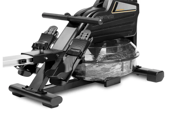Pohodlnou polohu a pocit při veslování zajišťuje ergonomicky tvarované sedlo a protiskluzové nášlapy s nastavitelnými řemínky pro správné zafixování nohou.