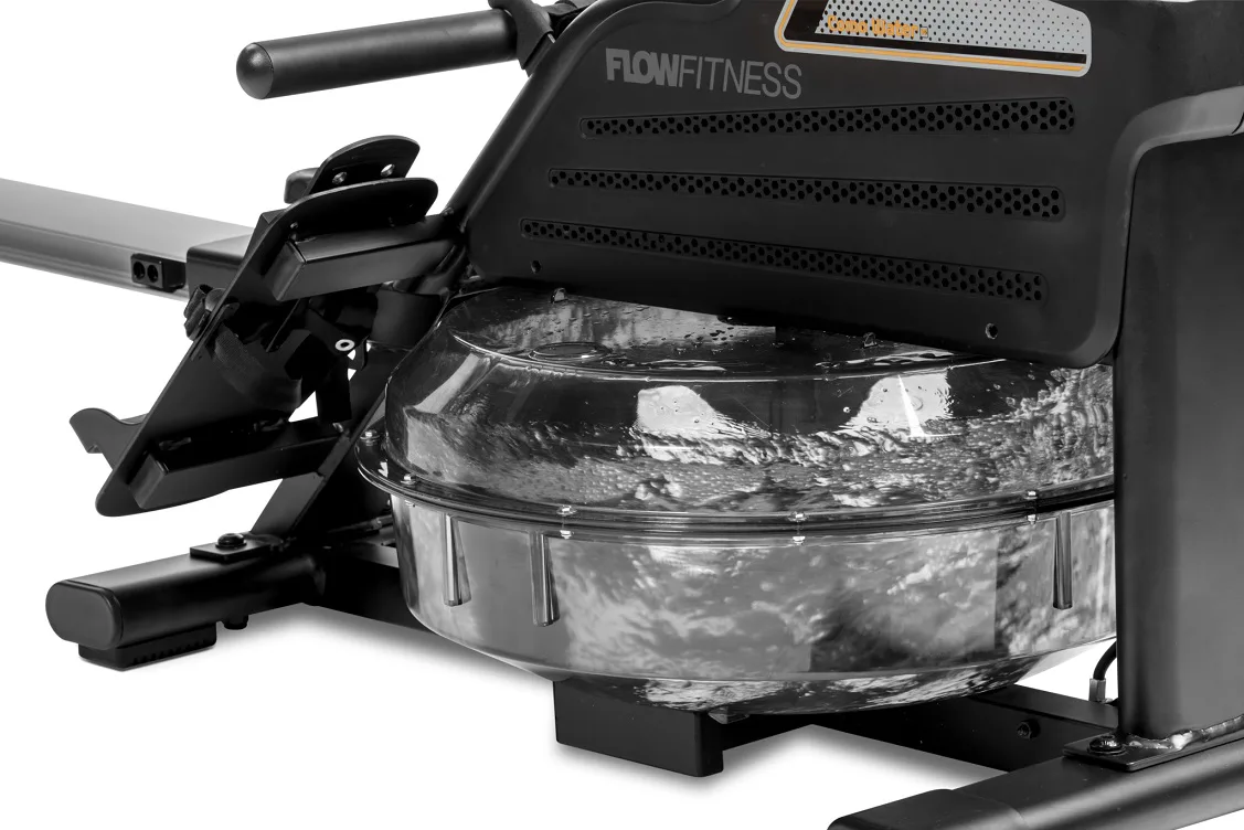 Flow Fitness Como Water w je veslovací trenažér, který vám pomůže dostat se do formy z pohodlí vašeho domova. Odpor je u vesla řízen vodou, což zajišťuje pocit jako z opravdového veslování. Na základě množství vody si sami určujete zátěž.