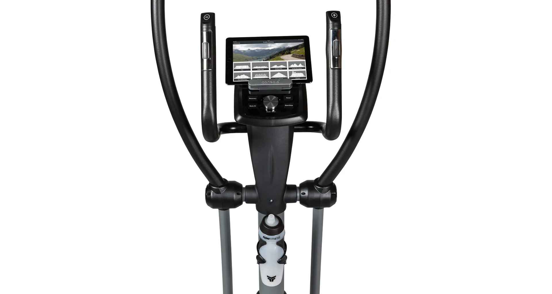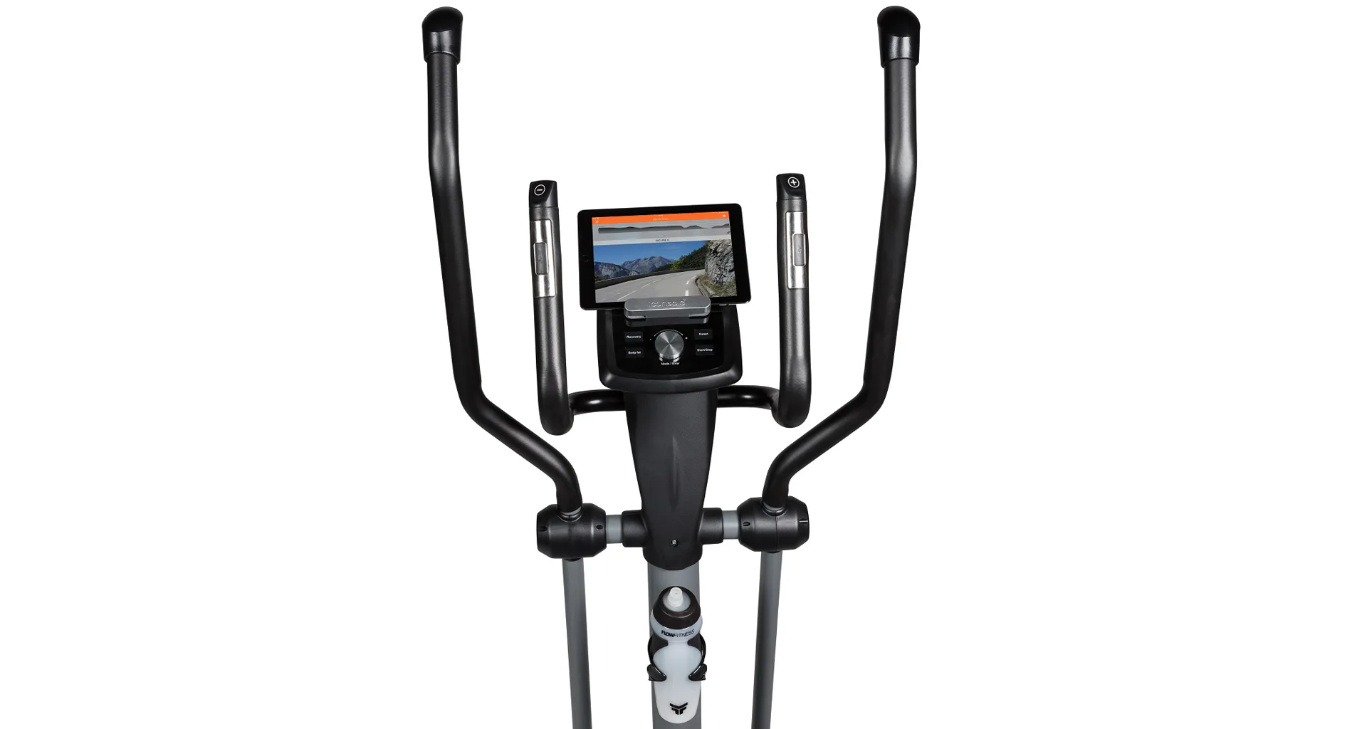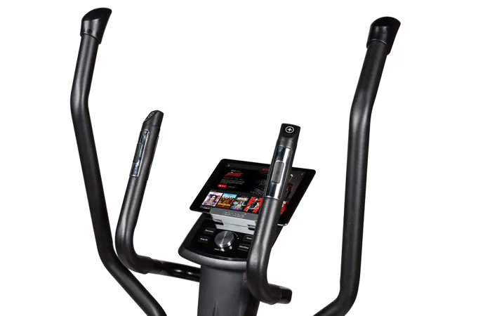 Eliptický trenažér Flow Fitness DCT2000i je vybaven přehledným počítačem s držákem na tablet, bohatou programovou nabídkou a možností využívat tréninkové aplikace pro rozmanitost tréninku. Dále jeho součástí jsou senzory na měření tepové frekvence, držák na lahev, transportní kolečka a vyrovnávače nerovnosti.