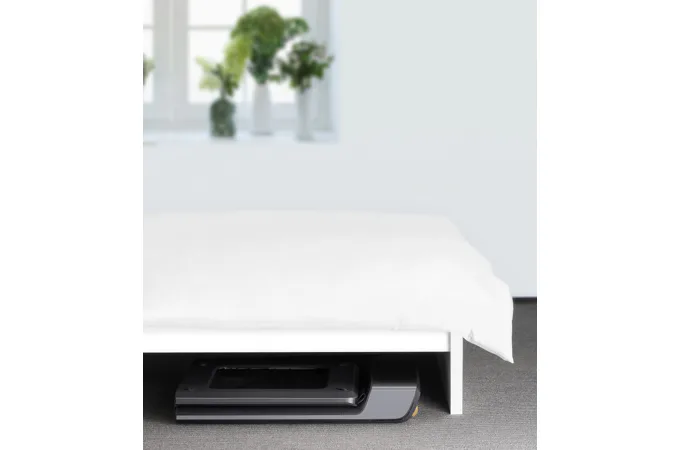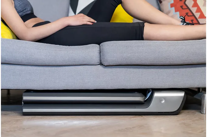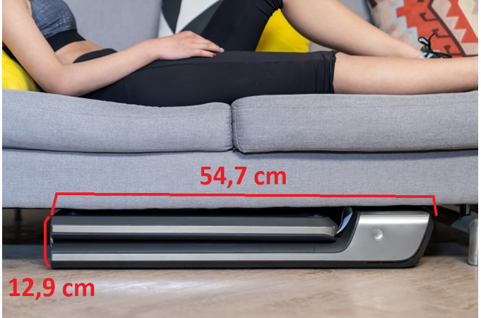 Běžecký pás je vybaven LED displejem, bluetooth zařízením pro připojení aplikace WalkingPad a transportními kolečky. Po dokončení chůze můžete pás složit a uložit.