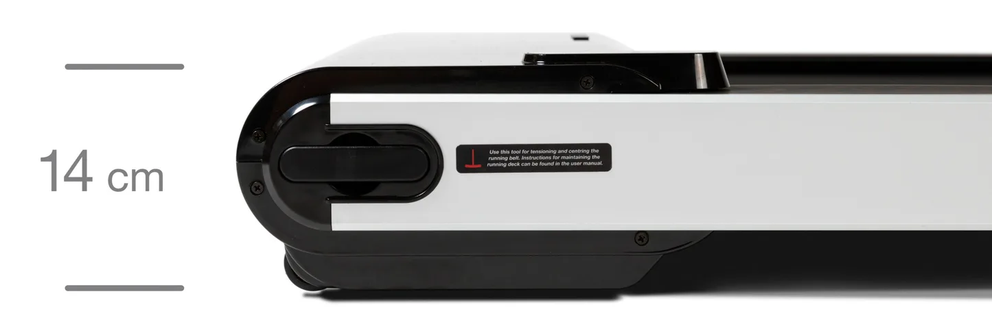 Flow Fitness DTM3000i je ideální běžecký pás vhodný do menších bytů. Svými minimalistickými rozměry s výškou 14 cm se řadí mezi nejplošší pásy na trhu. Trenažér je ideální pro každého nenáročného cvičence, který hledá úspornou variantu do svého obýváku.