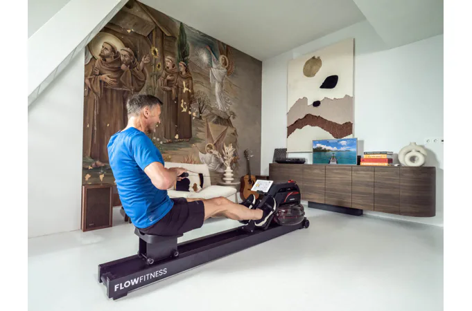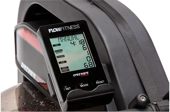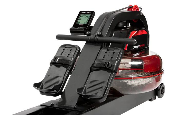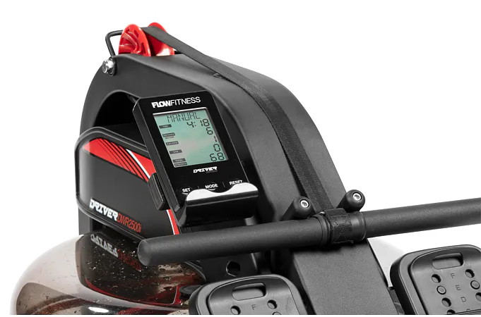 Flow Fitness DWR2500i je veslovací trenažér s robustní ocelovou konstrukcí a velmi kvalitním pojezdem. Odpor je u vesla řízen vodou, což zajišťuje pocit jako z opravdového veslování. Výškově nastavitelné pedály jsou opatřeny řemínky pro správné zafixování nohou.
