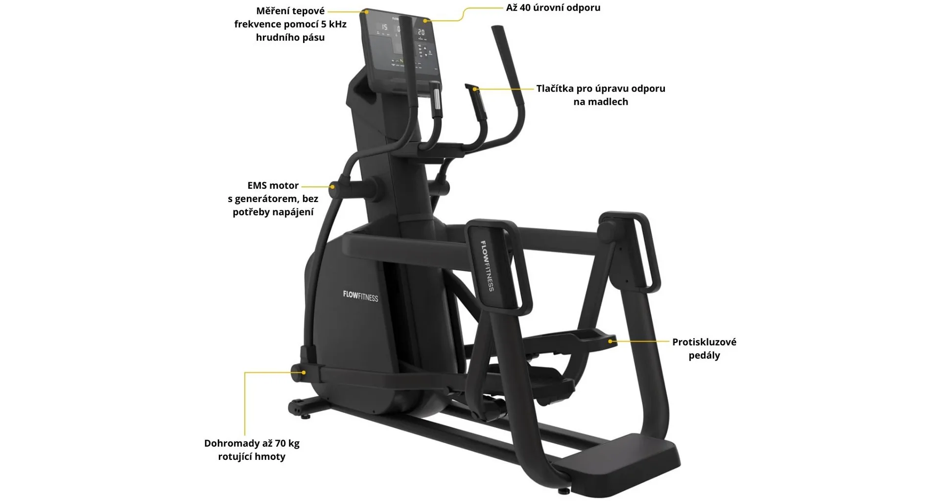 FLOW FITNESS X6i je profesionální eliptický trenažér. Ať už toužíte po aerobním tréninku s nízkou intenzitou nebo intervalový trénink s vysokou intenzitou, tento prémiový eliptický stroj to zvládne všechno. Uspokojí každého začínajícího i profesionálního cvičence.