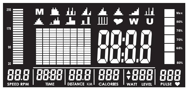 Trenažér je vybaven indukčním EMS brzdným systémem, který nabízí 69 úrovní obtížnosti (10 - 350 W, per 5 W). Tichý a plynulý chod stroje zajišťuje kalibrovaný setrvačníkový systém o hmotnosti 18,5 kg.