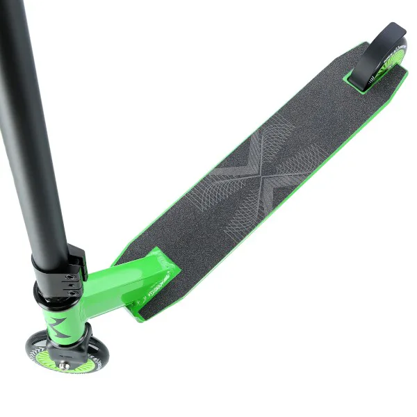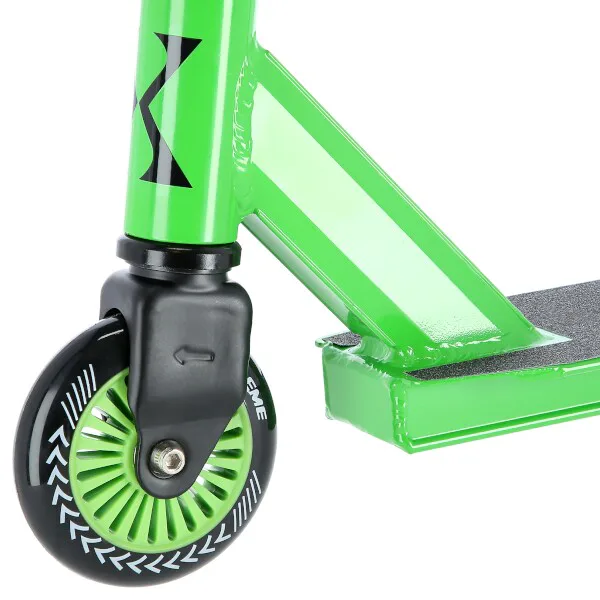 NILS Extreme HS106 je freestyle koloběžka s nosností 100 kg a je tak vhodná jak pro děti, tak pro dospělé. Konstrukce je vyrobena ze silné a trvanlivé oceli, platforma je z hliníku. Model HS106 je vhodný na asfalt a dlažbu. Kolečka o rozměru 100 x 24 mm jsou osazeny ložisky ABEC 7, bezpečnost zaručuje zadní přítlačná (blatník) brzda - takzvaný Flexi fender. NILS Extreme HS106 je díky malým, rychlým kolečkům, robustní, pevné kostrukci a řídítkům protáčejícím se o 360° určena k provádění triků.