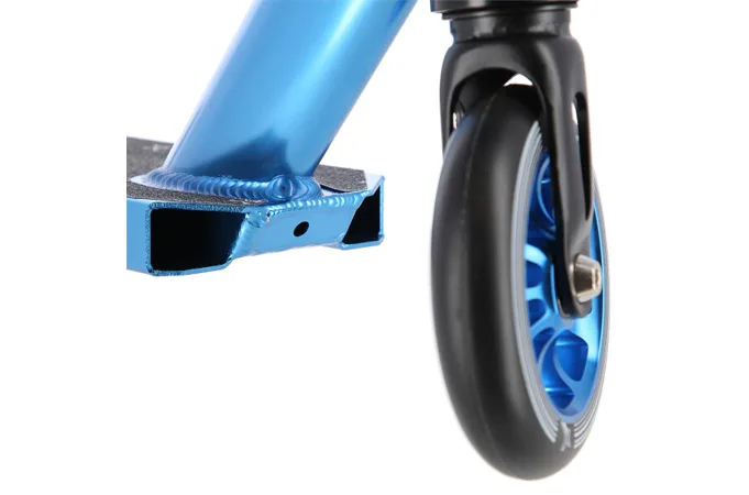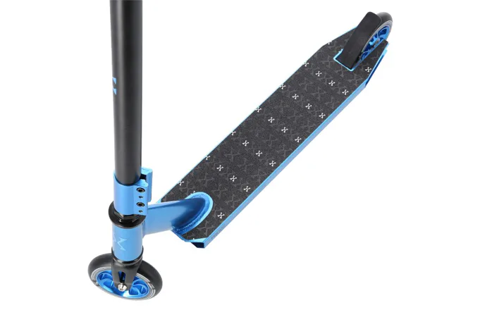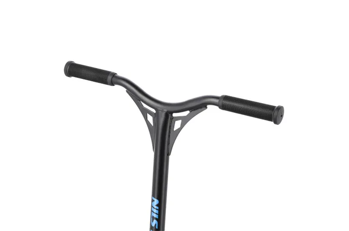 NILS Extreme HS107 je freestyle koloběžka s nosností 100 kg a je tak vhodná jak pro děti, tak pro dospělé. Konstrukce je vyrobena ze silné a trvanlivé oceli. Model HS107 je vhodný na asfalt a dlažbu. Kolečka o rozměru 110 x 24 mm mají hliníkový střed a jsou osazeny ložisky ABEC 9, bezpečnost zaručuje zadní přítlačná (blatník) brzda. NILS Extreme HS107 je díky malým, rychlým kolečkům, robustní, pevné konstrukci a řídítkům protáčejícím se o 360° určena k provádění triků. Řídítka jsou k hliníkové, bez závitové vidlici připevněny pomocí 4-šroubové svorky lze je tak snadno vyměnit. Robustní deck má dvě příčky a tři komory. Gumové gripy pohlcují nežádoucí vibrace.
