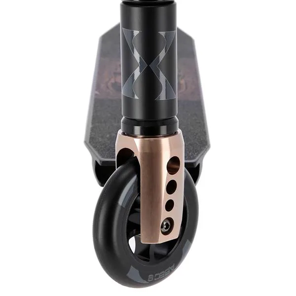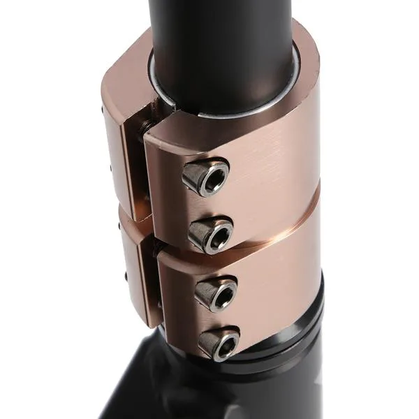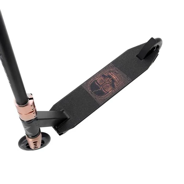 Řídítka jsou k hliníkové, bezzávitové vidlici připevněny pomocí 4-šroubové SCS svorky s vložkou a lze je tak snadno vyměnit. Robustní deck má dvě příčky a tři komory. Nylonové gripy jsou nasouvací se šroubovacími objímkami.