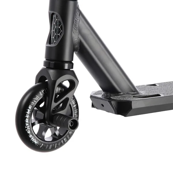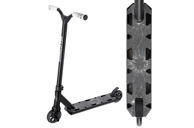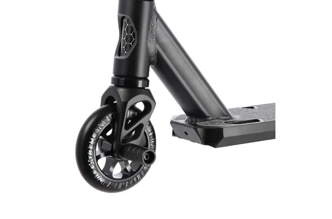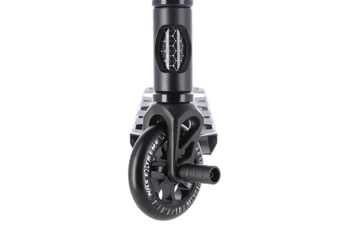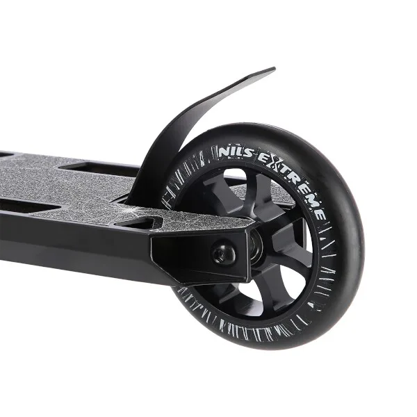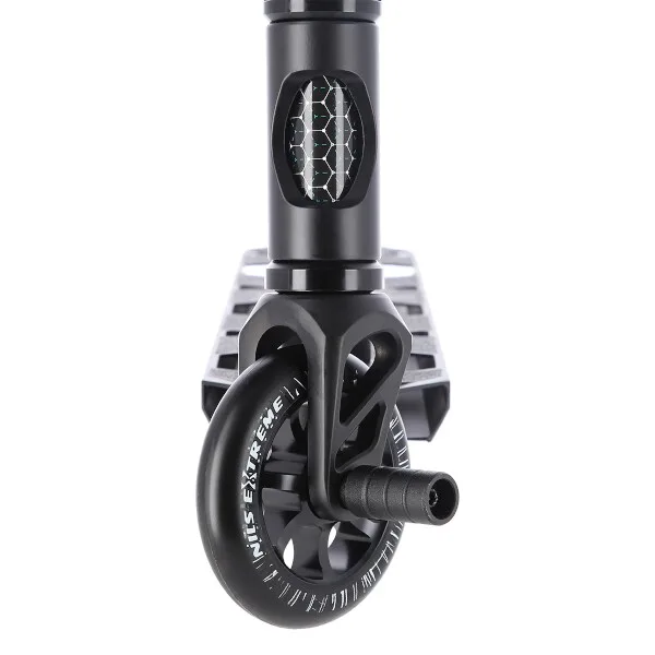 Jednotlivé díly koloběžky jsou k sobě svařeny pomocí precizních, hladkých svárů. Tříkomorový deck má několik přepážek, toto provedení napomáhá k rozkládání sil při doskocích. Samotná robustnost decku také snižuje množství materiálu obrušovaného při slidech, koloběžka tak má opravdu dlouhou životnost. Přední vidlice je z výroby opatřena PEGem pro sjíždění zábradlí a zídek. Model HS200 Pro patří k vrcholovým modelům freestyle koloběžek z nabídky NILS Extreme, který je zárukou mnoha hodin zábavy.