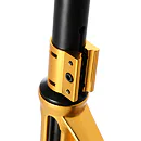 Jednotlivé díly koloběžky jsou k sobě svařeny pomocí precizních, hladkých svárů. Tříkomorový deck má několik přepážek, toto provedení napomáhá k rozkládání sil při doskocích. Samotná robustnost decku také snižuje množství materiálu obrušovaného při slidech, koloběžka tak má opravdu dlouhou životnost. Model HS202 Pro patří k vrcholovým modelům freestyle koloběžek z nabídky NILS Extreme, který je zárukou mnoha hodin zábavy.