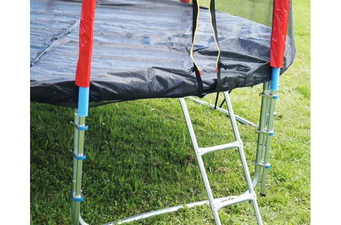 Trampolína GoodJump 4UPVC 366 cm jejíž hlavní výhodou jsou tyče ochranné sítě směřující až k zemi (některé trampolíny mývají tyto tyče ukončené již 50 cm nad zemí). Takto konstruované tyče se mohou při větším větru či skoku dítěte do ochranné sítě zničit. Trampolína je vhodná pro každodenní používání s dlouhodobou životností. Trampolína disponuje robustní a stabilní konstrukci se čtyřmi "U" nohami. Horní ochranná síť má vstup opatřený zipem a zajištěným pojistkou proti samovolnému rozepnutí. Součástí trampolíny je také žebřík, který usnadní vsup na skákací plochu a krycí plachta, která chrání trampolínu před vnějšími vlivy.