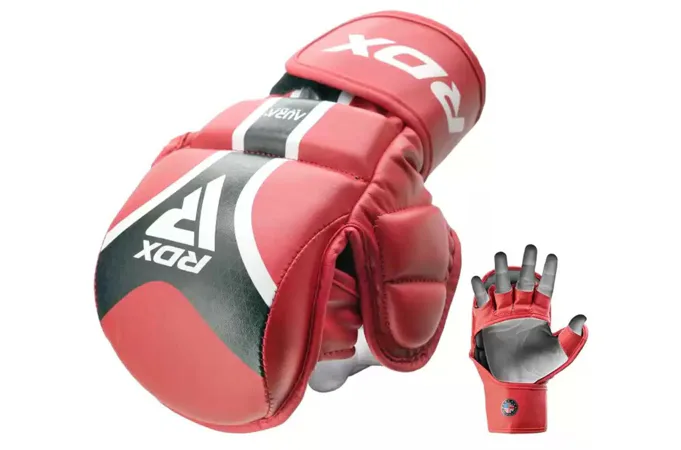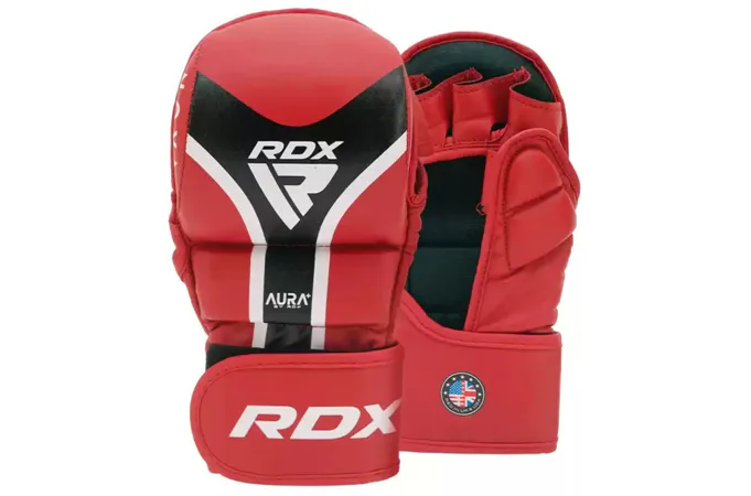 MMA grapplingové rukavice RDX T-17 z elegantní řady AURA poskytují optimální odolnost proti nárazům díky kompaktní a polstrované formě. Rukavice mají perfektní provedení prodyšnosti, která pomáhá udržet vaše ruce v suchu a zabraňuje vzniku nepříjemného zápachu. Systém rychlého zapínání EZ zajišťuje, že vaše rukavice zůstanou na správném místě. Nabízí také velmi snadné nasazování a sundávání. Díky všestrannému designu a elegantnímu zevnějšku nemají graplingové rukavice RDX T-17 AURA v bojovém průmyslu konkurenci.