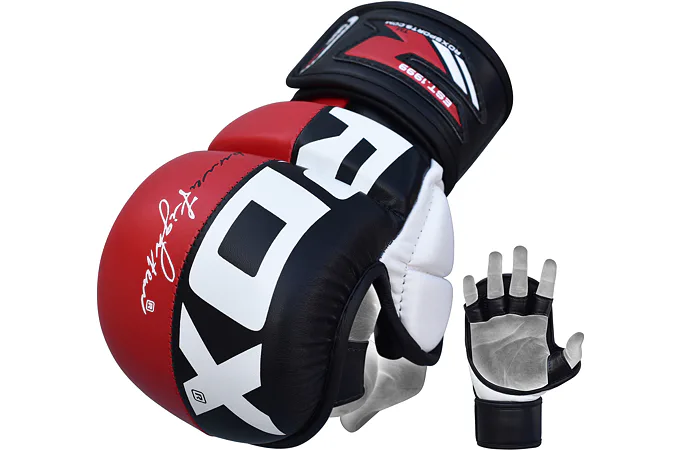 RDX Grappling Rex Red T6 jsou profesionální grapplingové rukavice schválené Švédskou federací smíšených bojových umění. Rukavice s částečně otevřeným palcem jsou určeny speciálně pro sportovce MMA. Rukavice rukavic s gelovou výplní GEL EFFICAX LINING™ v modro-černé barvě, výborně chrání klouby a zápěstí. Skvělá přilnavost a prodyšnost.