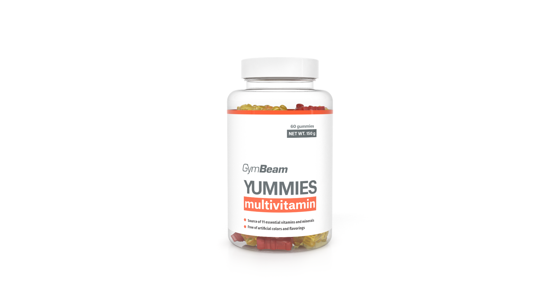 Multivitamin Yummies jsou gumoví medvídci, kteří si vás získají nejen svými lahodnými příchutěmi, ale i bohatým vitamínovým profilem. Díky přítomnosti vitamínů A, C, D3, E, B5, B6 a B12 se z chutných bonbonů stává vitamínová bomba, která se postará o zdraví vaší imunity, kostí a svalů. Už konzumací 2 až 4 želé bonbonů zajistíte pro svůj organismus správnou látkovou přeměnu důležitou pro tvorbu energie. Přítomnost vitamínu C se také postará o tvorbu kolagenu a správnou funkci dásní a chrupavek. Společně s vitamínem E navíc chrání buňky před oxidačním stresem. Udržení zdravé pokožky a zraku zase zajistí vitamín A, a vitamíny skupiny B pomohou ke snížení vyčerpání a únavy.