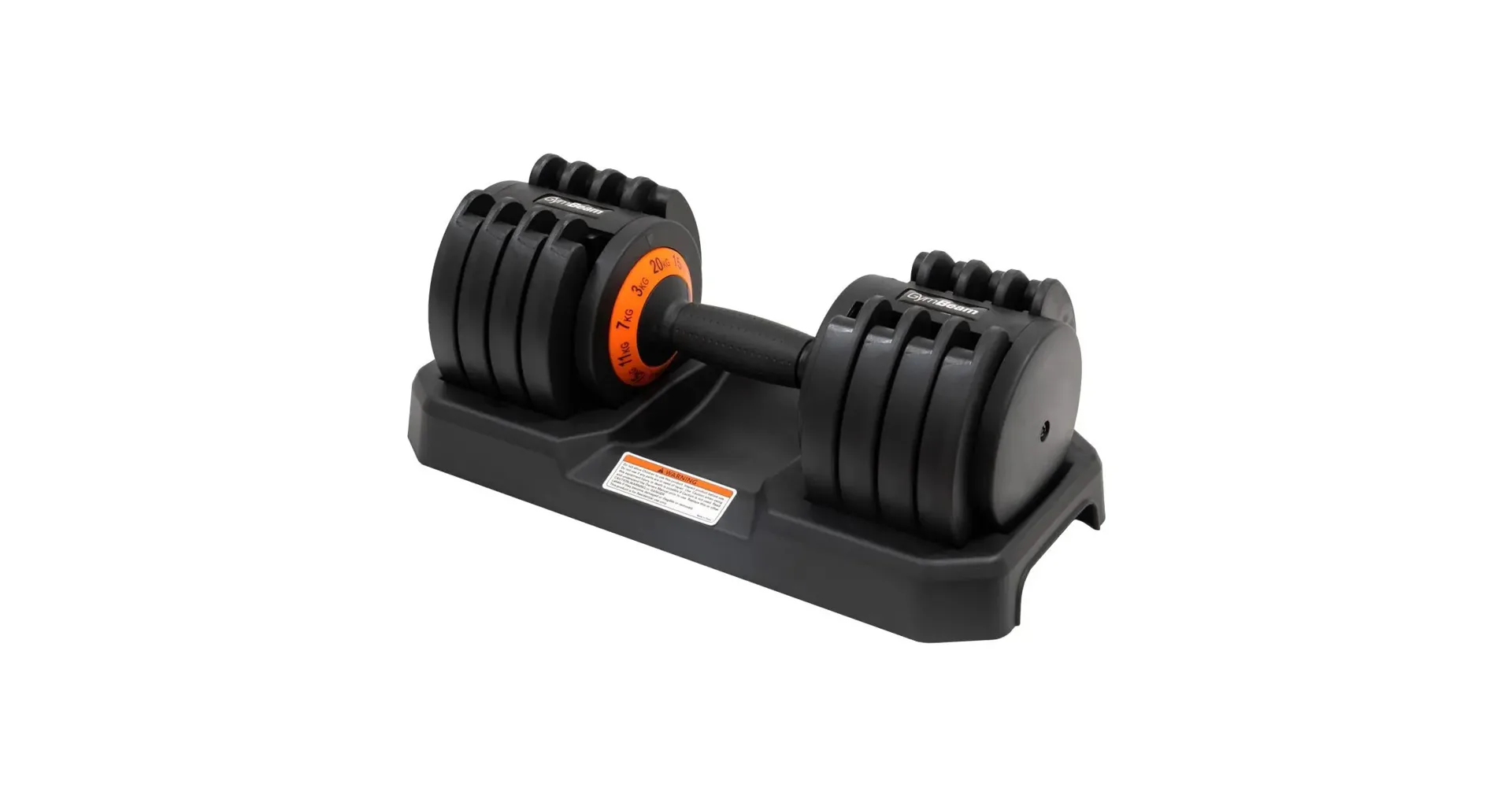 Použití této nastavitelné činky navíc zvládne každý. Při umístění činky na stojanu stačí otáčet rukojeť do té doby, než bude směřovat na vámi vybranou hmotnost vyznačenou na oranžovém kolečku. Poté zvednete činku za protiskluzovou rukojeť a můžete začít cvičit. Když budete chtít zase změnit zátěž, stačí ji vrátit na stojan a přenastavit hmotnost. Nemusíte tak sundávat ručně všechny kotouče, čímž mezi sériemi neztratíte tolik času.